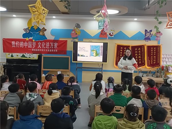 为深入推进全民阅读,丰富幼儿精神文化生活,近日,安徽省蒙城县图书馆走进县第一幼儿园、第二幼儿园齐山路校区,开展“我们的中国梦——文化进万家”书香进校园主题活动。活动融合绘本课堂、非遗体验、绘本漂流与律动操等多种形式,寓教于乐,深受师生欢迎。