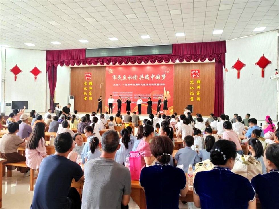 在军民文化大礼堂,县委宣传部、县文旅局、县司法局、县退役军人事务局等单位联合组织庆祝“八一”建军节98周年文艺演出进军营活动,精彩的节目生动展现军民鱼水深情与昂扬向上的精神风貌,为紧张的军营生活增添了节日的喜庆与温暖,在轻松愉悦的氛围中进一步拉近了军民距离。