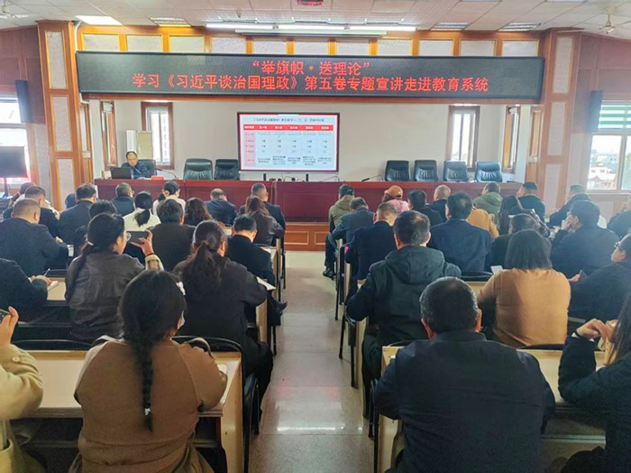 宣讲会上,焦云鹏同志从系统把握《习近平谈治国理政》第五卷的整体内容、准确理解《习近平谈治国理政》第五卷中党的理论最新成果、以《习近平谈治国理政》第五卷指导实践、推进工作等三个方面进行了系统阐述。同时,还结合教育系统实际对“以中国式现代化推进中华民族伟大复兴”、“进一步全面深化改革”、“发展新时代中国特色社会主义文化”三个专题进行了深入解读,内容丰富、深入浅出,既有理论深度,又能联系实际,引起了与会人员的强烈共鸣。
