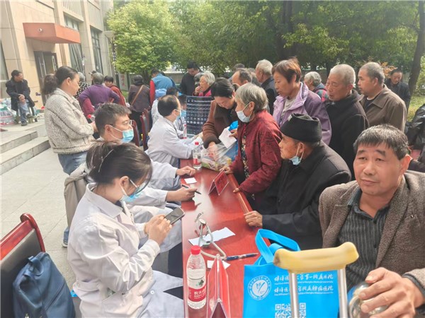 活动一开始,各学科专家诊台前便排起了长队。面对前来咨询的群众,专家们耐心十足:接过老人递来的药盒,逐一向其讲解用药剂量与服用时间;为血压偏高的居民细致分析成因,结合饮食、运动给出个性化调理建议;针对反复咳嗽的患者,详细询问症状持续时间与既往病史,初步判断病情并指导进一步检查方向。“大夫,我这眼睛看东西模糊好一阵了,您帮我看看咋回事?”五官科李慧专家仔细为老人做了眼部检查,轻声解释“是老花眼伴随轻度白内障,平时注意用眼习惯,定期复查就行”,一句话让老人放下了心。整个义诊现场,“您慢慢说”“别着急”“记不住我写下来”成为专家们的口头禅,专业又贴心的服务赢得了群众连连称赞。