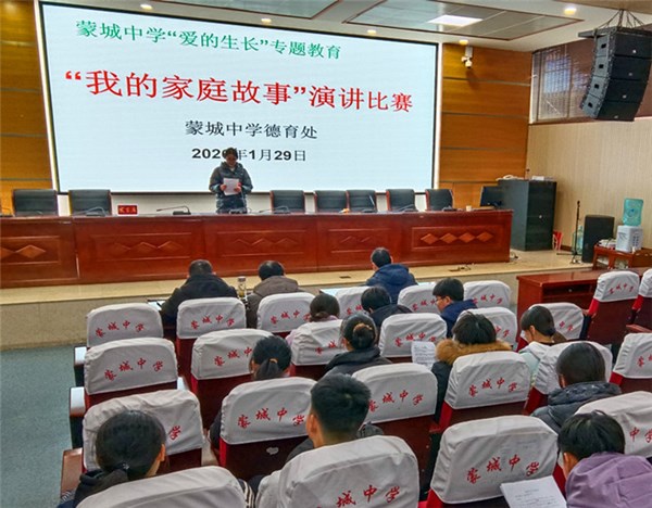 为深化“爱的生长”专题教育内涵,引导学生在家庭故事中感悟亲情、培育爱心,日前,蒙城中学联盟“我的家庭故事”主题演讲比赛在各校区如期举行。来自各班的优秀学子齐聚一堂,以声传情,诉说家庭里的温暖与传承,让“爱”的种子在校园中生根发芽。