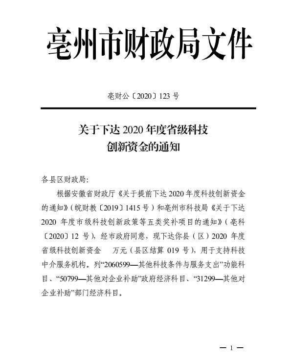 | 名称: | 关于下达2020年度省级科技创新资金的通知 | 文号: | 无 |