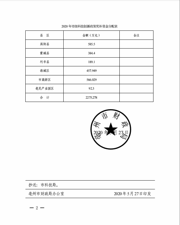 | 名称: | 关于下达2020年市级科技创新政策奖补资金的通知 | 文号: | 无 |