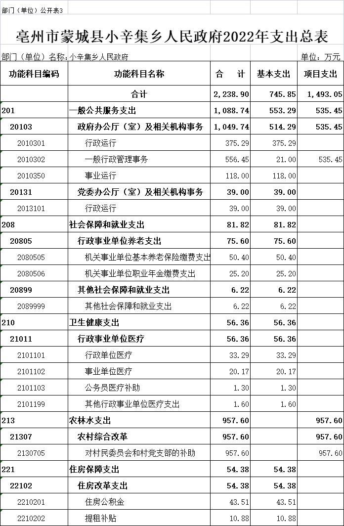 蒙城县小辛集乡人民政府 2022 年支出预算 2238.90 万元,