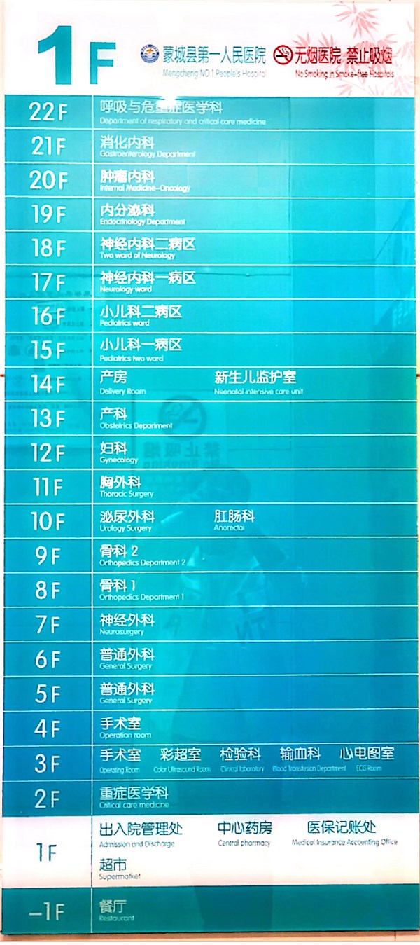 | 名称: | 蒙城县第一人民医院 楼层导引 | 文号: | 无 |