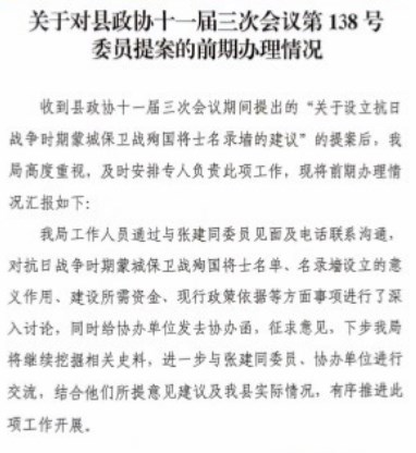 | 名称: | 蒙城县退役军人事务局138号委员提案前期办理情况 |