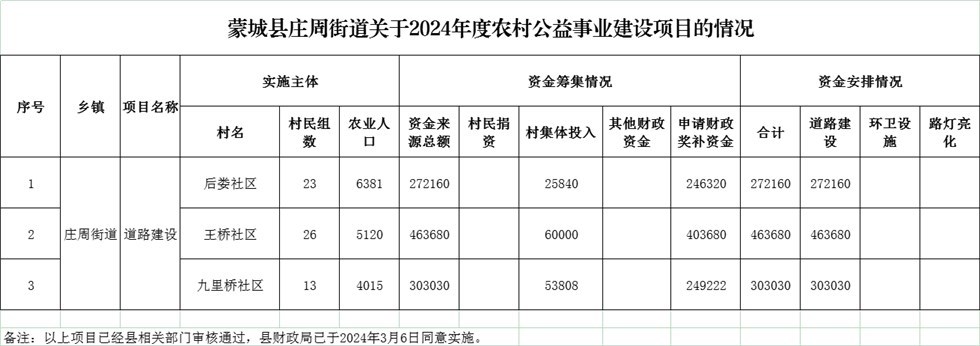 | 名称: | 【财政扶贫】蒙城县庄周街道关于2024年度农村公益事业建设项目 |