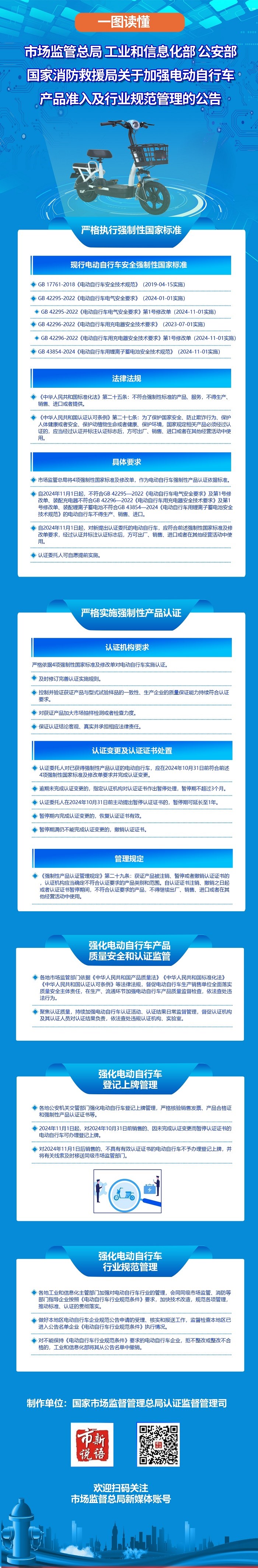| 名称: | 一图读懂 | 市场监管总局 工业和信息化部 公安部 国家消防救援局关于加强电动自行车产品准入及行业规范管理的公告 |