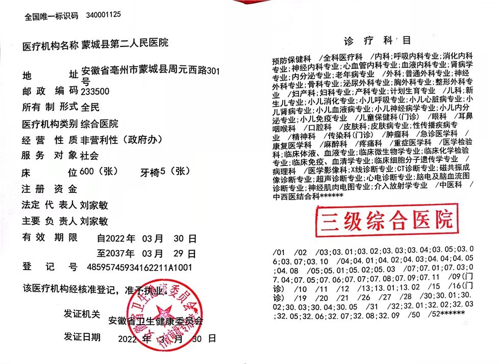 | 发布机构: | 蒙城县第二人民医院 | 主题分类: | 卫生、体育 |
