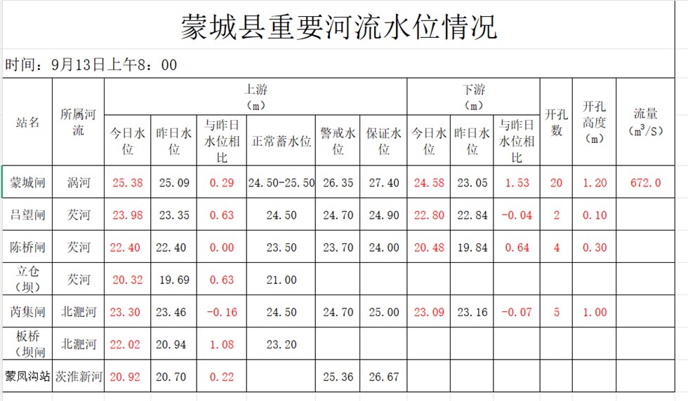 | 名称: | 【水位预警信息】蒙城县重要河流水位信息(2025.9.13) |