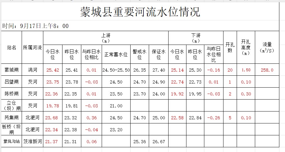 | 名称: | 【水位预警信息】蒙城县重要河流水位信息(2025.9.17) |