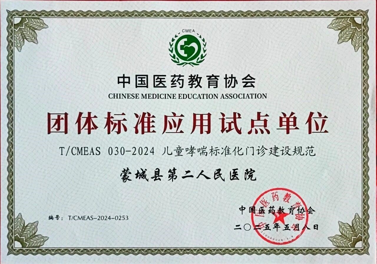 | 名称: | 儿童哮喘标准化门诊建设规范试点单位标识 |