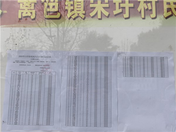 | 名称: | 篱笆镇宋圩村2025年12月惠民惠农补贴资金发放公示 |
