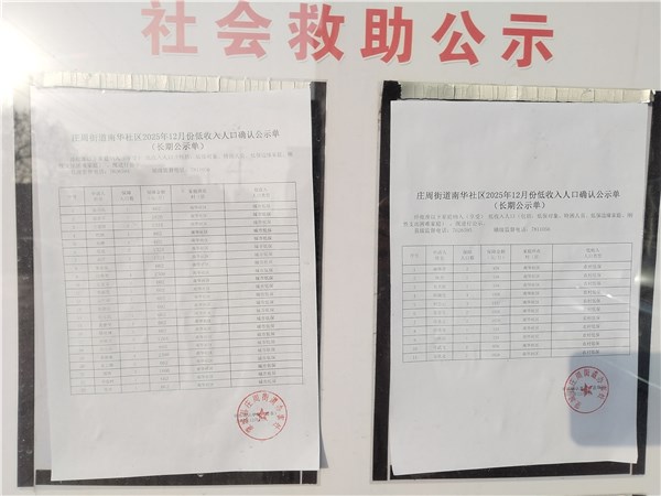 | 名称: | 庄周街道南华社区2025年12月份惠民惠农补贴资金发放公示情况 |