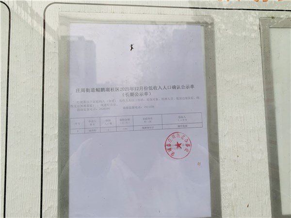 | 名称: | 庄周街道鲲鹏湖社区2025年12月份惠民惠农补贴资金发放公示情况 | 文号: | 无 |