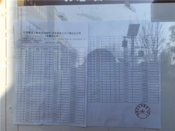 | 名称: | 庄周街道王桥社区2026年1月份惠民惠农补贴资金发放公示情况 |