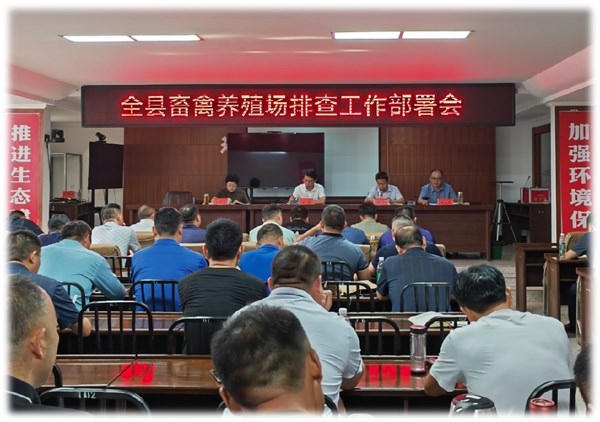 8月18日上午,县委常委、副县长王雷,副县长李彬,在县生态环境分局四楼会议室召开全县畜禽养殖场排查工作部署会。