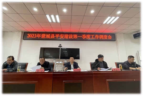 3月30日下午,县委常委、县委办主任、政法委书记武万福在县委政法委,主持召开2023年蒙城县平安建设第一季度工作调度会。