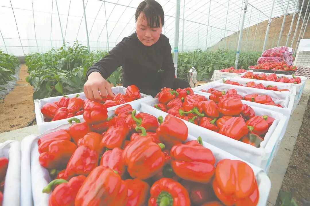 △近日,蒙城县兴农绿巨人蔬菜基地,农民正在采摘彩椒。本报通讯员 胡卫国 摄