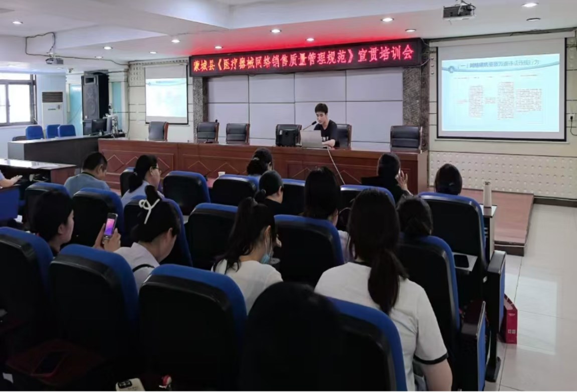 为深入贯彻落实国家药品监督管理局最新修订的《医疗器械网络销售质量管理规范》,进一步压实医疗器械网络销售企业主体责任,提升监管人员业务能力与企业合规经营水平,近日,蒙城县市场监督管理局举办了《医疗器械网络销售质量管理规范》宣贯培训会,全县医疗器械经营企业代表、医疗器械监管人员共计60余人参加,此次宣贯培训特邀亳州市市场监管局医疗器械监督管理科专家进行授课。