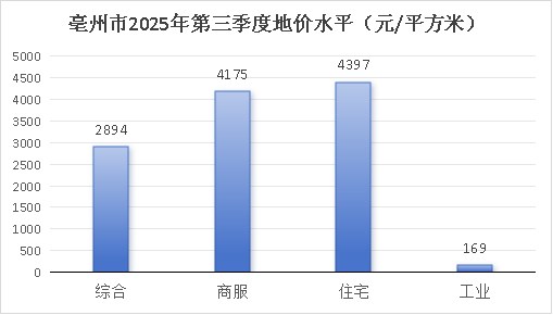 表1 亳州市2025年第三季度地价水平一览表