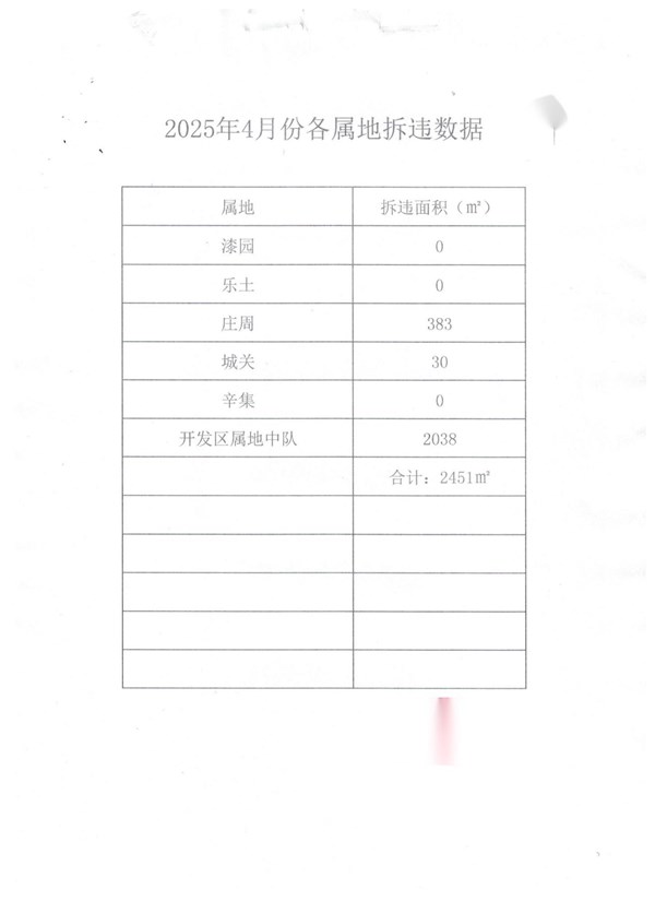 蒙城县城市管理局2025年4月份违法建设拆除情况