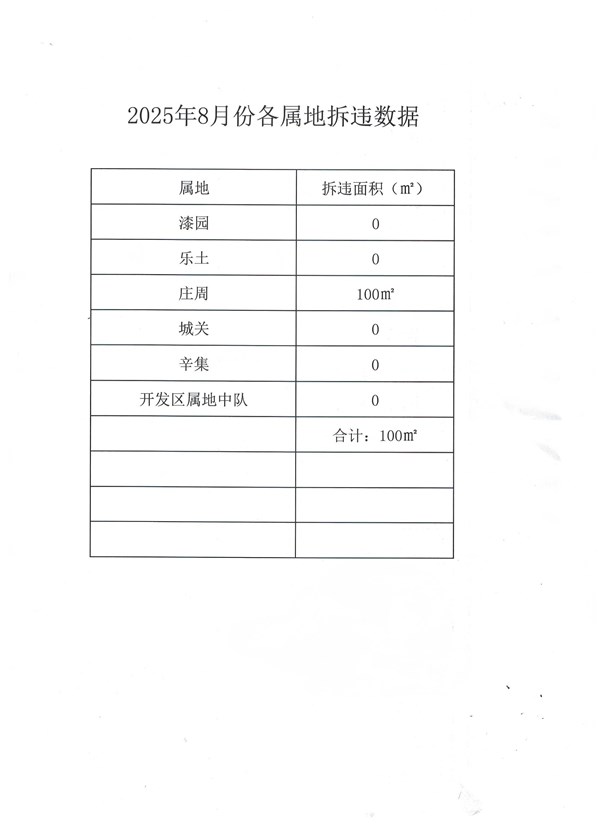 蒙城县城市管理局2025年8月份违法建设拆除情况