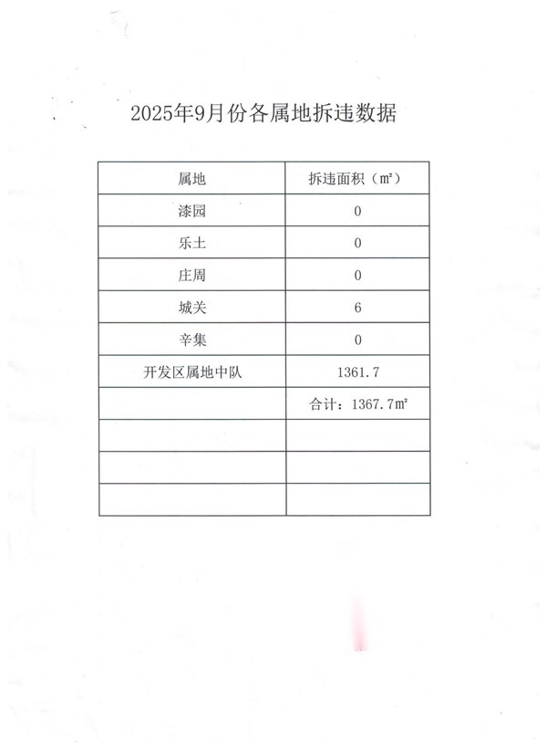 蒙城县城市管理局2025年9月份违法建设拆除情况