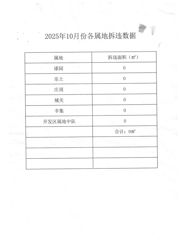 蒙城县城市管理局2025年10月份违法建设拆除情况