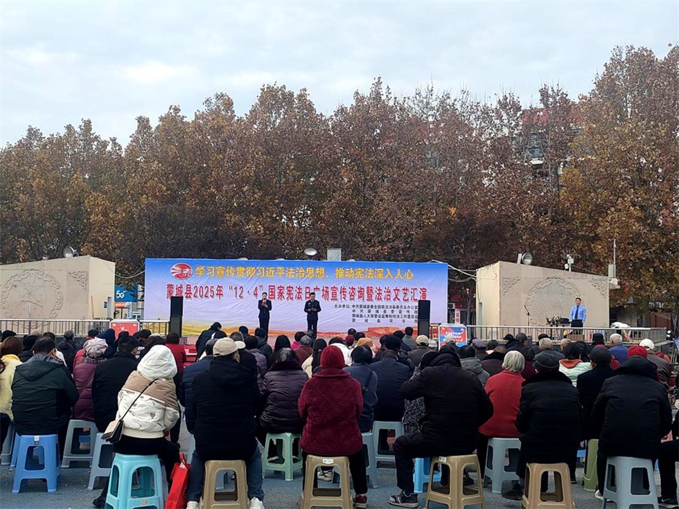 2025年12月4日,蒙城县依法治县办、县委宣传部、县司法局等部门在梦蝶广场隆重举办了“12·4”国家宪法日广场咨询活动暨法治文艺汇演,活动现场气氛热烈,吸引了众多群众参与。