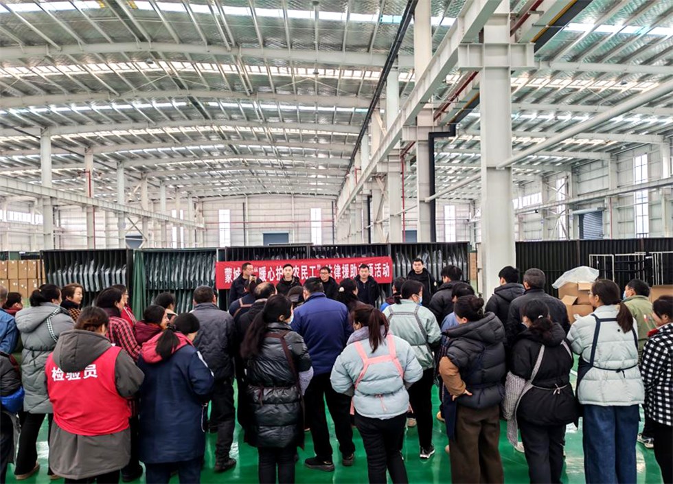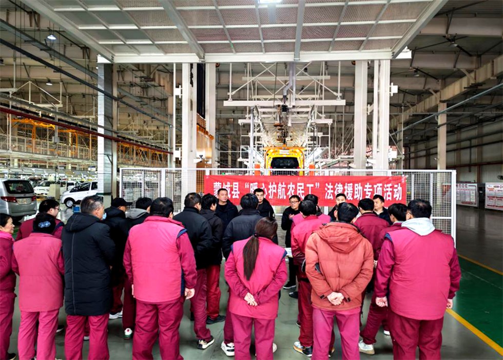 为进一步提升农民工法治观念和依法维权能力,畅通农民工法律援助服务渠道,12月24日上午,蒙城县司法局与县人社局联合组建法律服务队,深入蒙城县万隆汽车零部件有限公司和安徽江淮安驰汽车有限公司,集中开展“暖心护航农民工”法律援助专项行动。
