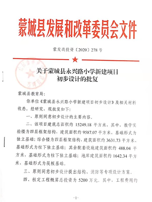 永兴路小学新建项目设计初步批复