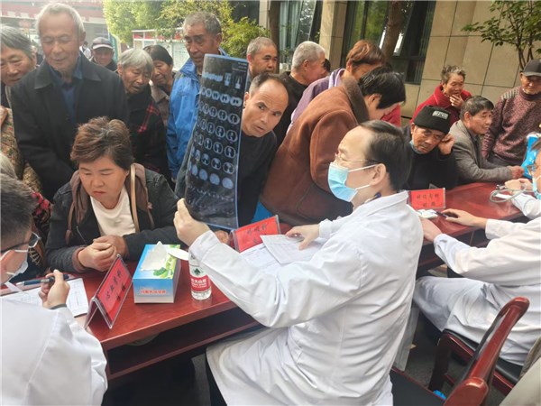 活动一开始,各学科专家诊台前便排起了长队。面对前来咨询的群众,专家们耐心十足:接过老人递来的药盒,逐一向其讲解用药剂量与服用时间;为血压偏高的居民细致分析成因,结合饮食、运动给出个性化调理建议;针对反复咳嗽的患者,详细询问症状持续时间与既往病史,初步判断病情并指导进一步检查方向。“大夫,我这眼睛看东西模糊好一阵了,您帮我看看咋回事?”五官科李慧专家仔细为老人做了眼部检查,轻声解释“是老花眼伴随轻度白内障,平时注意用眼习惯,定期复查就行”,一句话让老人放下了心。整个义诊现场,“您慢慢说”“别着急”“记不住我写下来”成为专家们的口头禅,专业又贴心的服务赢得了群众连连称赞。