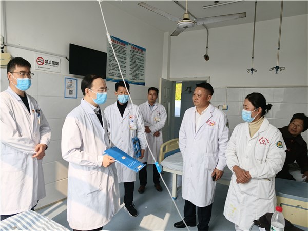 上午11点30分义诊结束后,李伟副书记带领专家团队并未停歇,而是径直走进楚村镇中心卫生院住院病房。每到一间病房,专家们都认真查看患者病历,俯身询问患者恢复情况,仔细检查伤口、查看各项检查报告,与管床医生深入交流当前治疗方案。针对一位慢性阻塞性肺疾病患者,呼吸与重症医学科李伟、周晓宇专家共同会诊,结合患者病情调整了用药方案,并叮嘱医护人员“要密切关注患者血氧饱和度变化,指导其正确进行呼吸功能锻炼”;在心血管内科患者病房,陈耀专家详细讲解了冠心病患者术后护理的关键要点,为患者和家属吃下“定心丸”。
