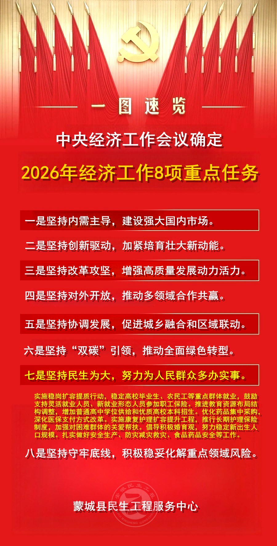 中央经济工作会议确定2026年经济工作8项重点任务之民生篇