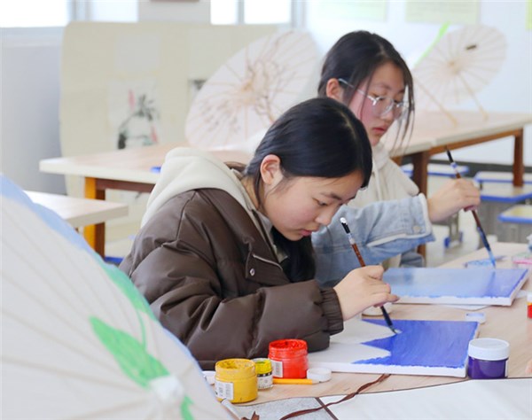 三义路中学美术教室内,处处可见同学们专注创作的身影。在老师的专业指导下,学生们或调色运笔,或勾勒线条,用画笔描绘着眼中的世界与心中的美好,整个空间洋溢着浓厚的艺术气息。