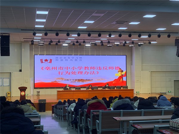 会上,学校相关负责人详细解读了《亳州市中小学教师违反师德行为处理办法》的主要内容、适用范围和处理程序,重点围绕师德失范行为的认定标准、处理种类及适用情形进行了系统讲解。会议结合教育领域典型案例开展了警示教育,引导全体教师以案为鉴、筑牢底线。