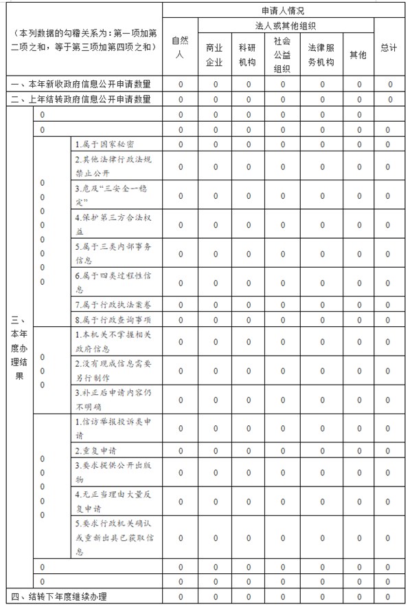 2020年,蒙城县商务局受理依申请公开事项0件。