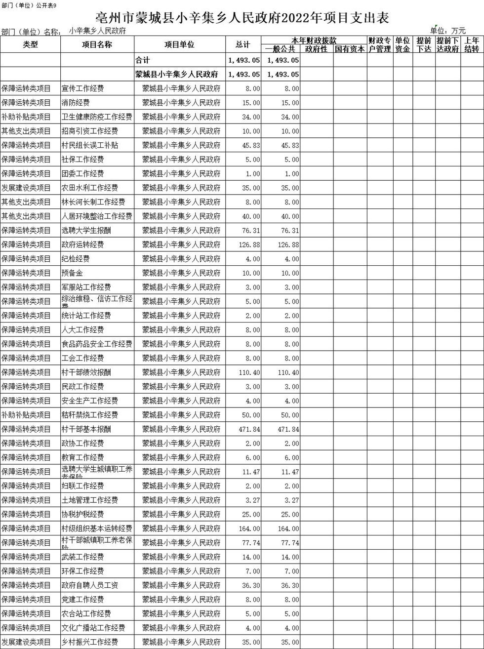 蒙城县小辛集乡人民政府 2022 年一般公共预算支出