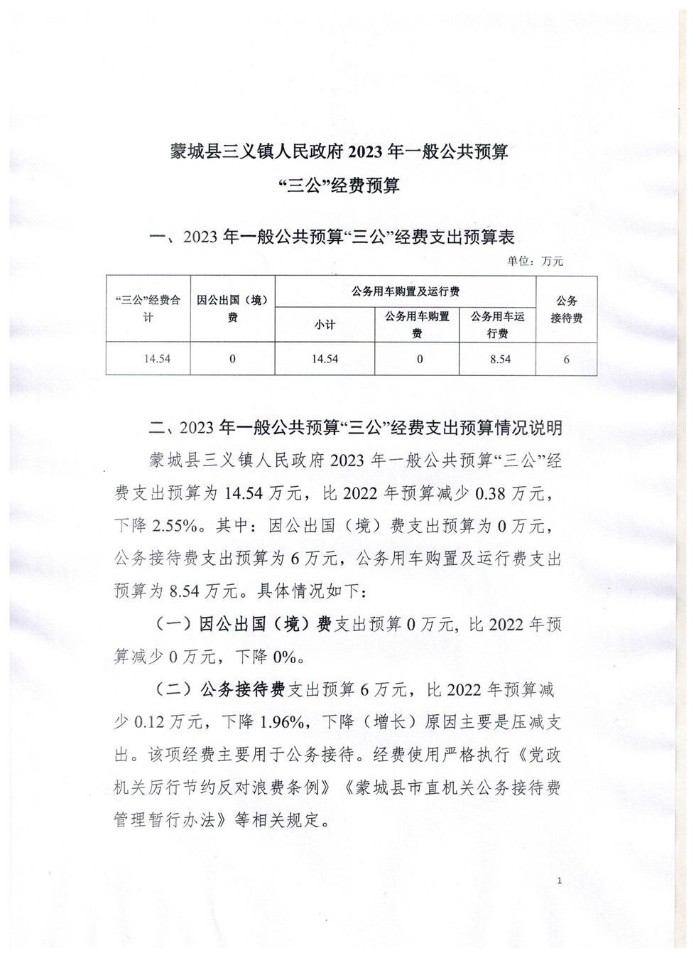 | 名称: | 蒙城县三义镇人民政府 2023 年一般公共预算 “三公”经费预算 |