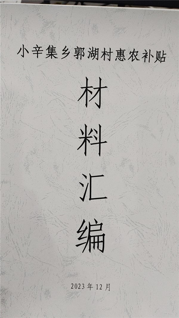 | 名称: | 蒙城县小辛集乡郭湖村2023年惠农补贴汇总成册情况 |