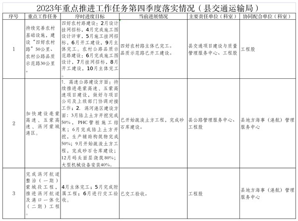 | 名称: | 2023年重点推进工作任务第四季度落实情况(县交通运输局) |