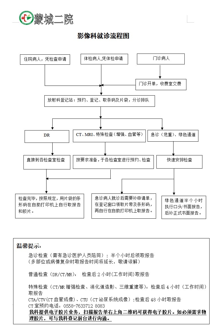 | 名称: | 蒙城县第二人民医院影像科就诊流程图 |