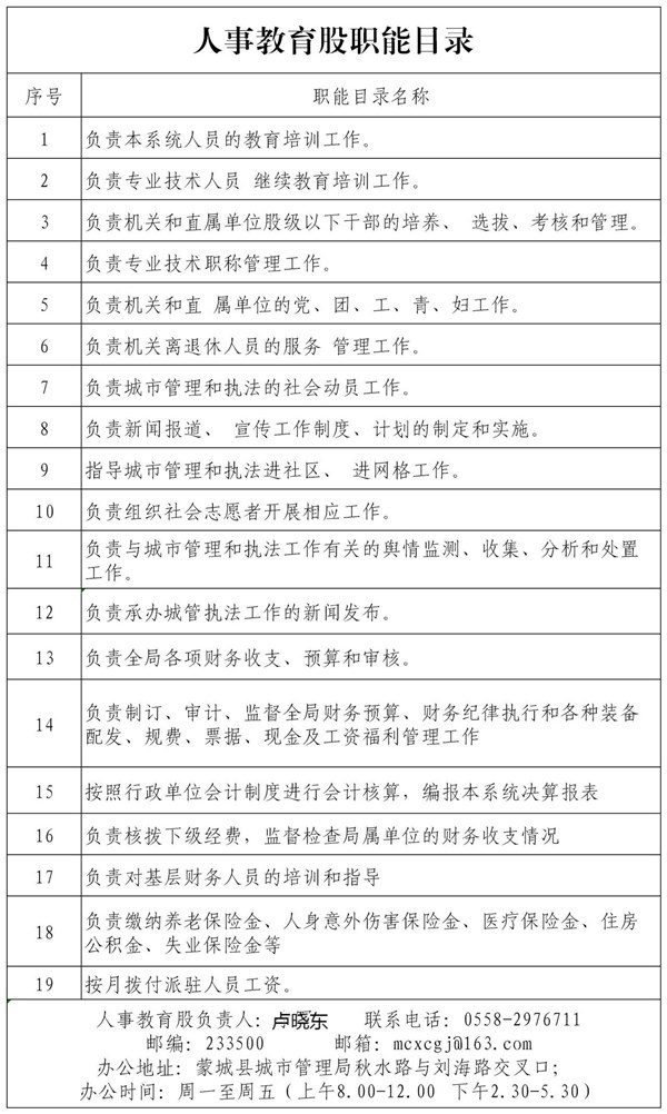 | 名称: | 人事教育股职能目录 | 文号: | 无 |
