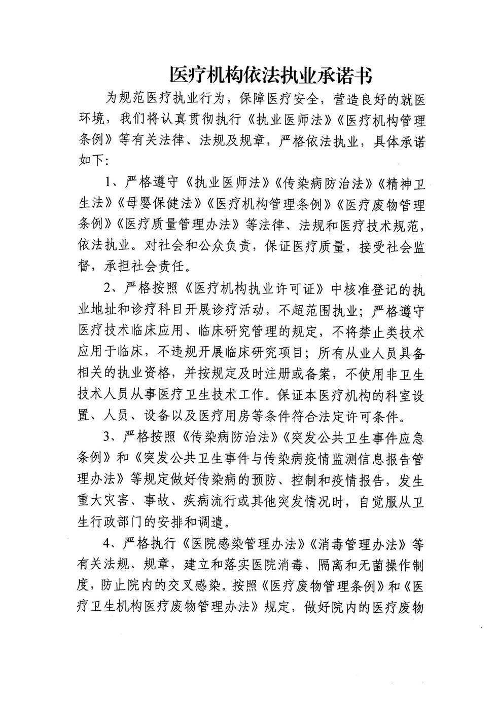 | 名称: | 医疗机构依法执业承诺书 | 文号: | 无 |
