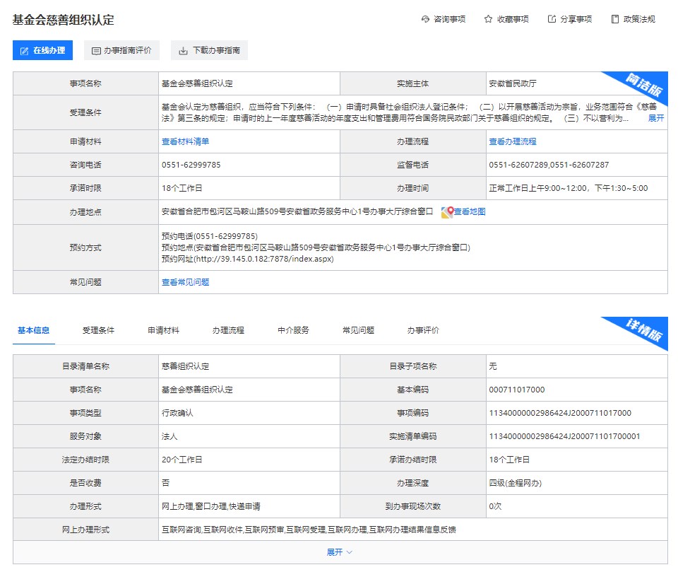 | 名称: | 慈善组织认定条件及材料 | 文号: | 无 |