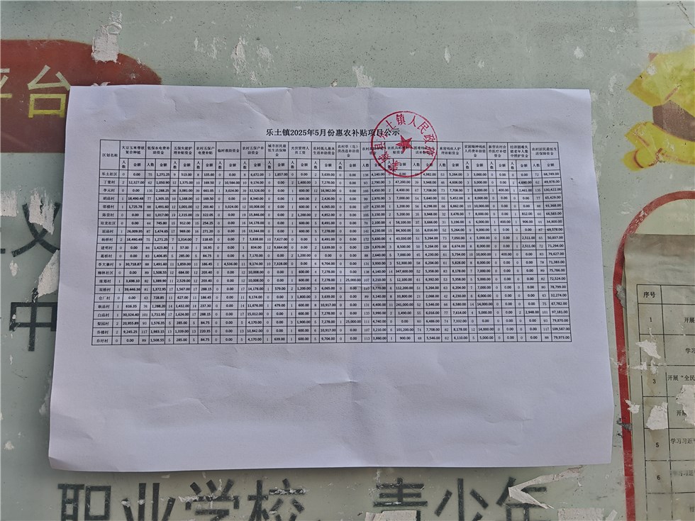 | 名称: | 乐土镇2025年5月份惠农补贴发放公示情况 |