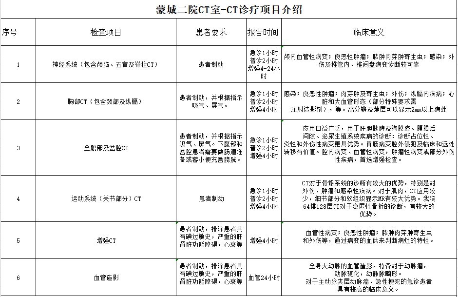 | 名称: | 蒙城县第二人民医院CT诊疗项目介绍 |