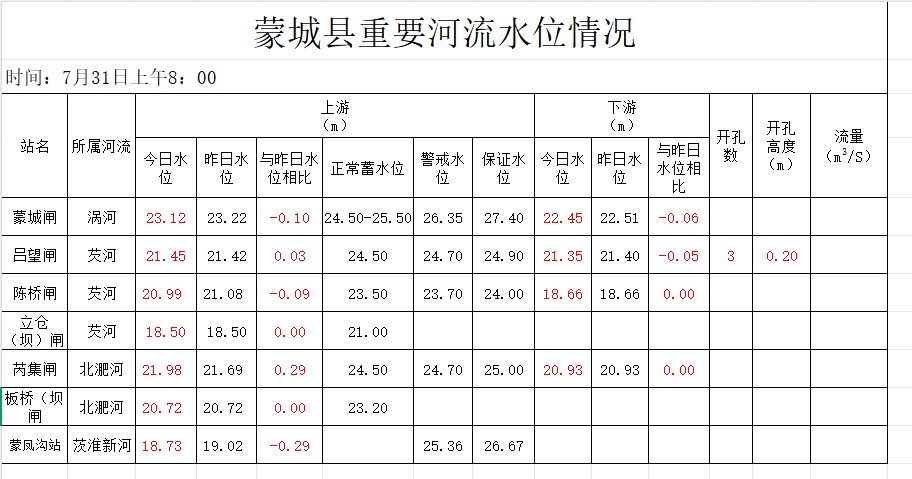 | 名称: | 【水位预警信息】蒙城县重要河流水位信息(2025.7.31) |
