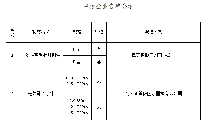 | 名称: | 蒙城县第二人民医院卫生耗材采购结果公示(第一次) |
